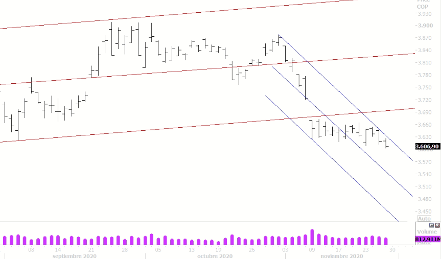 Para que el USDCOP pierda este movimiento bajista debe subir por encima de 3654.