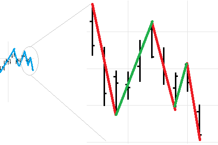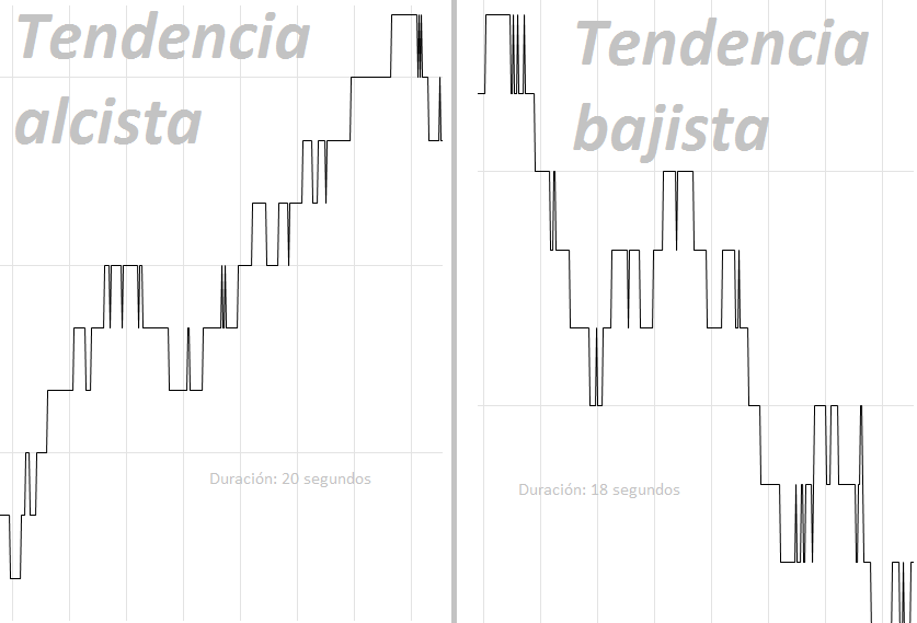 Cada tendencia es una serie de movimientos en la misma dirección, estos movimientos ocurren desde la mínima expresión de precio (la escala microscópica del tick) hasta los grandes movimientos que duran meses y años en construirse.