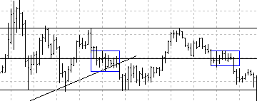Como se observa en la siguiente gráfica, el punto medio de una zona de congestión, sirve como un nivel de descanso, en el cual los precios se detienen antes de continuar su viaje hacia el otro extremo de la zona de congestión.
